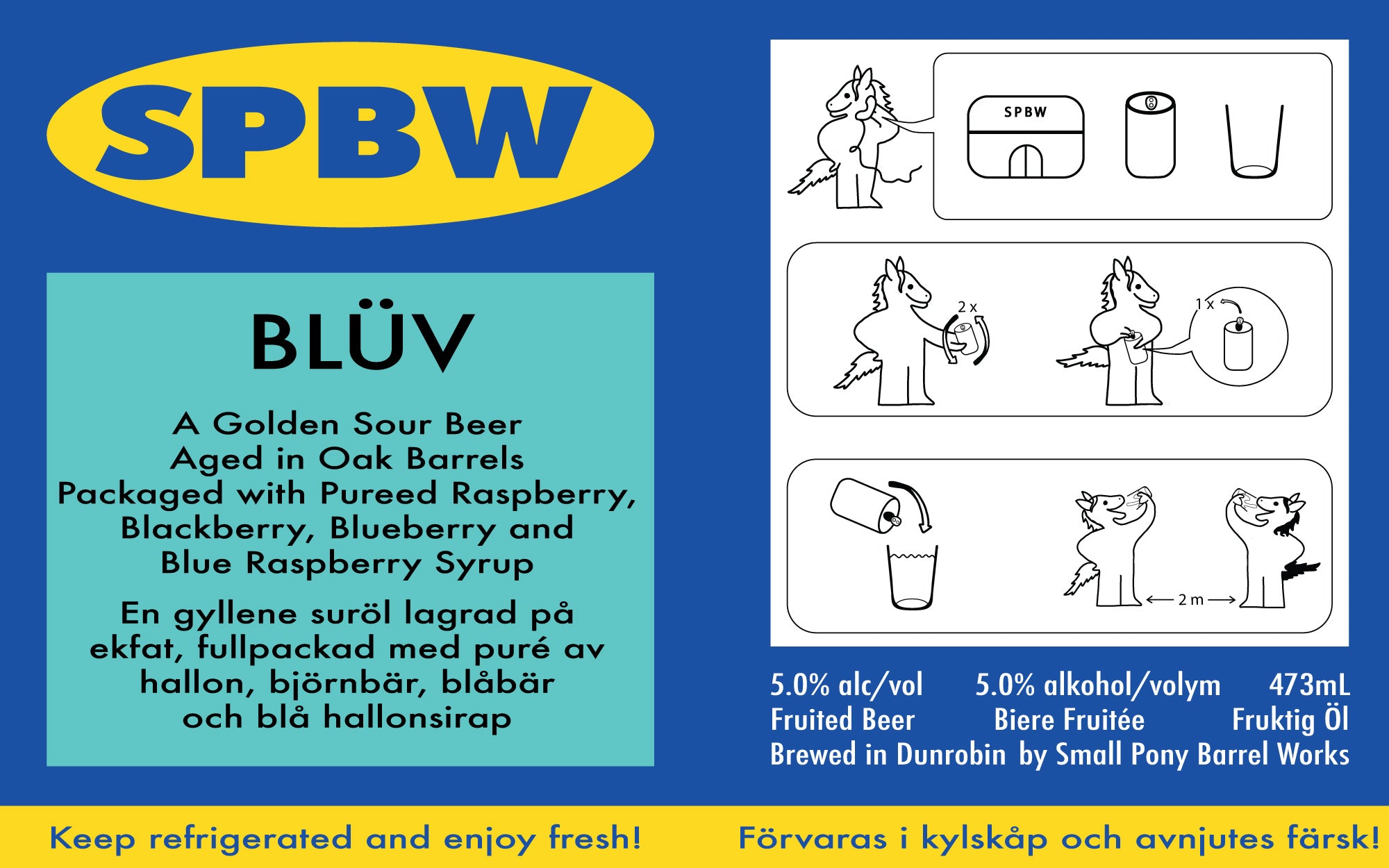 A Golden Sour Beer Aged in Oak Barrels Packaged with Pureed Raspberry, Blackberry, Blueberry and Blue Raspberry Syrup